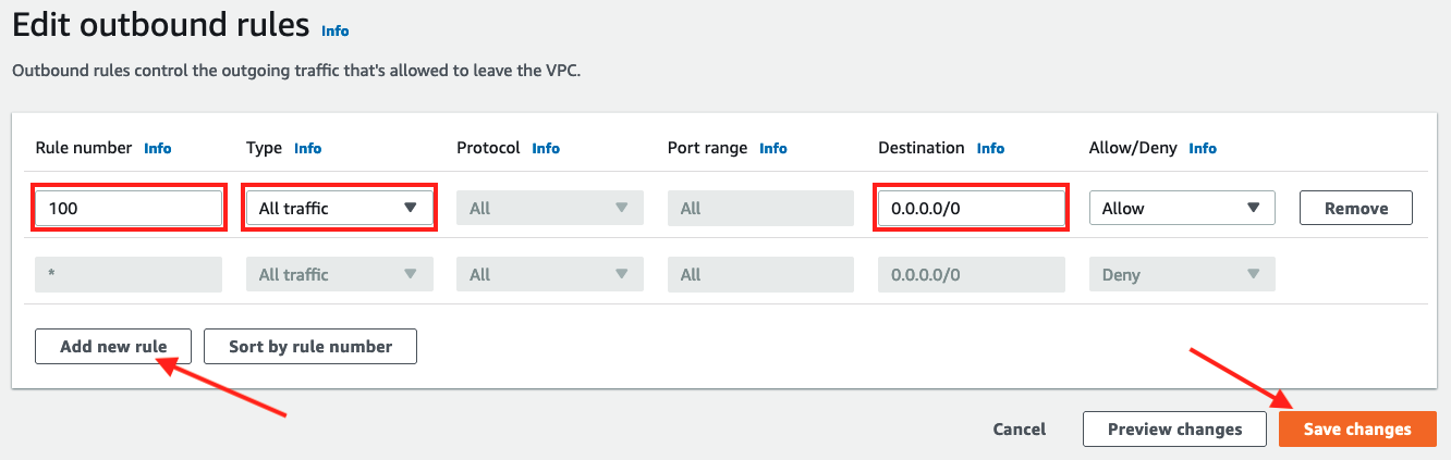 Now follow the same steps described above for Inbound, but work on Outbound Rules tab of NACLs