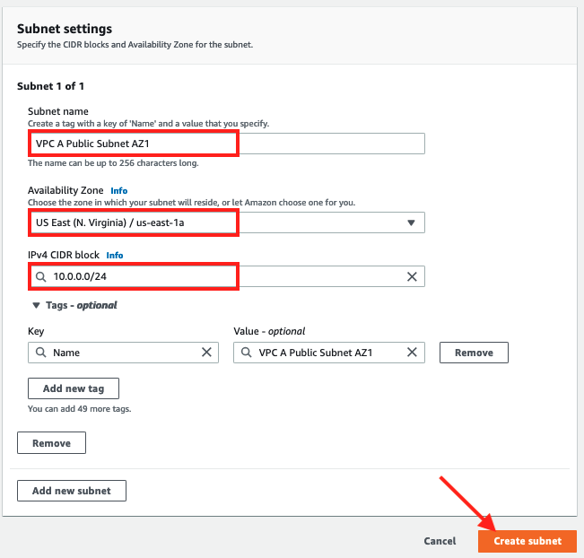 VPC A Public Subnet AZ1 - Select the Availablity Zone of