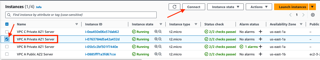VPC B Private AZ1 Serverinstance, scroll down and click on the Security tab below and click on the Security groups link forsg-xxxxxxxx (VPC B Security Group)