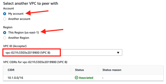 5. Under Select another VPC to peer with ensure thatMy Accountis selected for Account